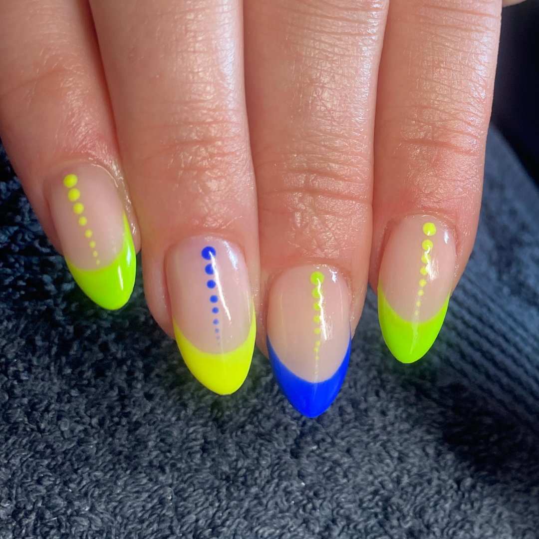 Lav din yndlings farve i forstærkning eller forlængelse og gør dig klar til at male nogle lækre franske! Diana har brugt sit Dotting Tool til at lave prikkerne ned af neglen, som giver den fedeste effekt!