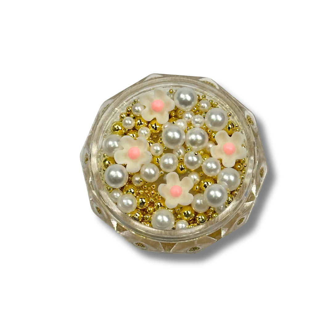 Fimo blomster i en skøn pastelfarve, blandet med perler og beads