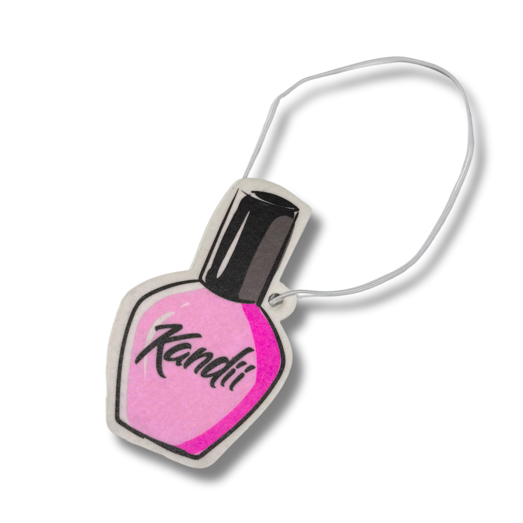 Frisk bilen, kontoret eller makeup-området op med vores søde og sassy duftfrisker formet som en gel polish – selvfølgelig med Kandii-logo! Det ikoniske pink design er ikke kun cute at se på – den dufter også fantastisk af klassisk bubblegum. En perfekt lille detalje til dig, der elsker beauty vibes og girl power, selv når du er på farten.