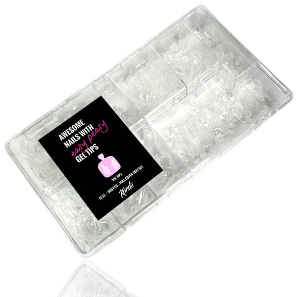 Heldækkende Soft Gel tipper, påsættes med enten adhesive tabs for en enkelt fest/begivenhed eller med Gel Tip Glue. Bruger du acryl gel, kan du risikerer tippen revner da materialet er for stærkt til tippen.