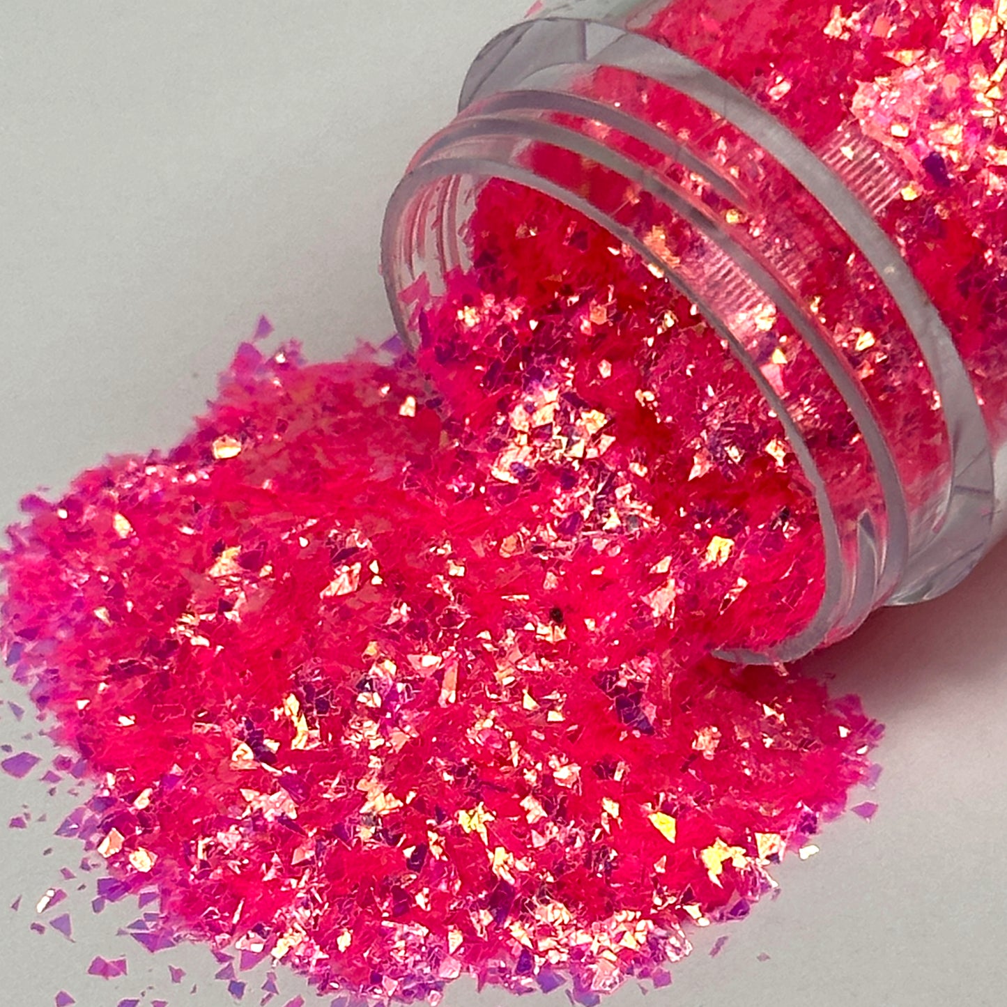 Masser af smukke pink glitterflakes med gyldent skær.