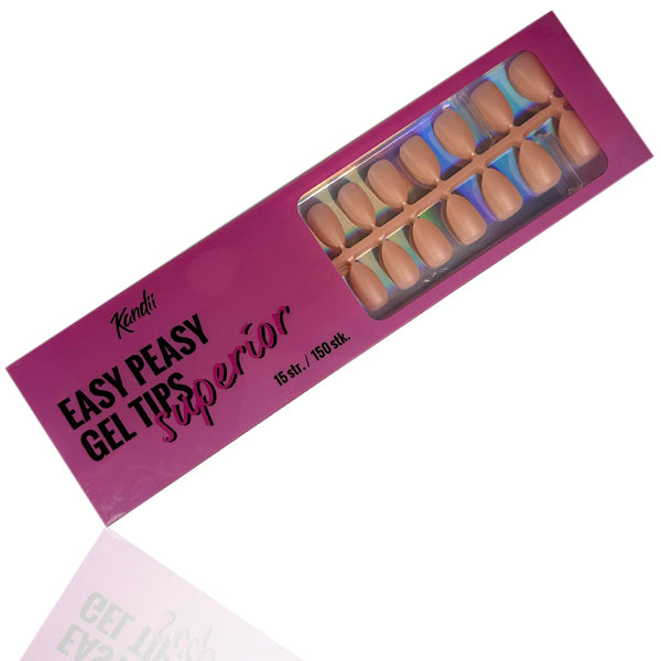 Tyndere, lettere og nemmere formular end andre Gel Tips - Bemærk at billedet er uden forstærkning og Top Coat, ønsker du et mat look, så afslut med Matte Top Coat efter forstærkning.
