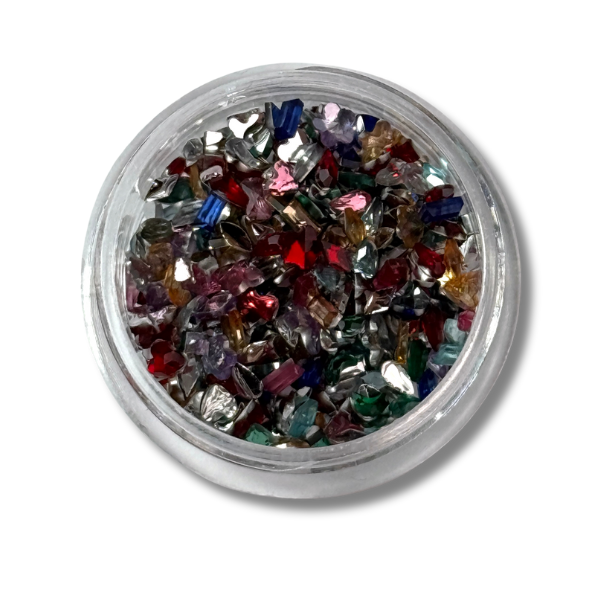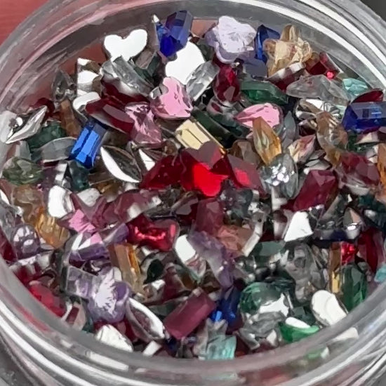 figurformede rhinsten i resin i forskellige farver i mini størrelser.