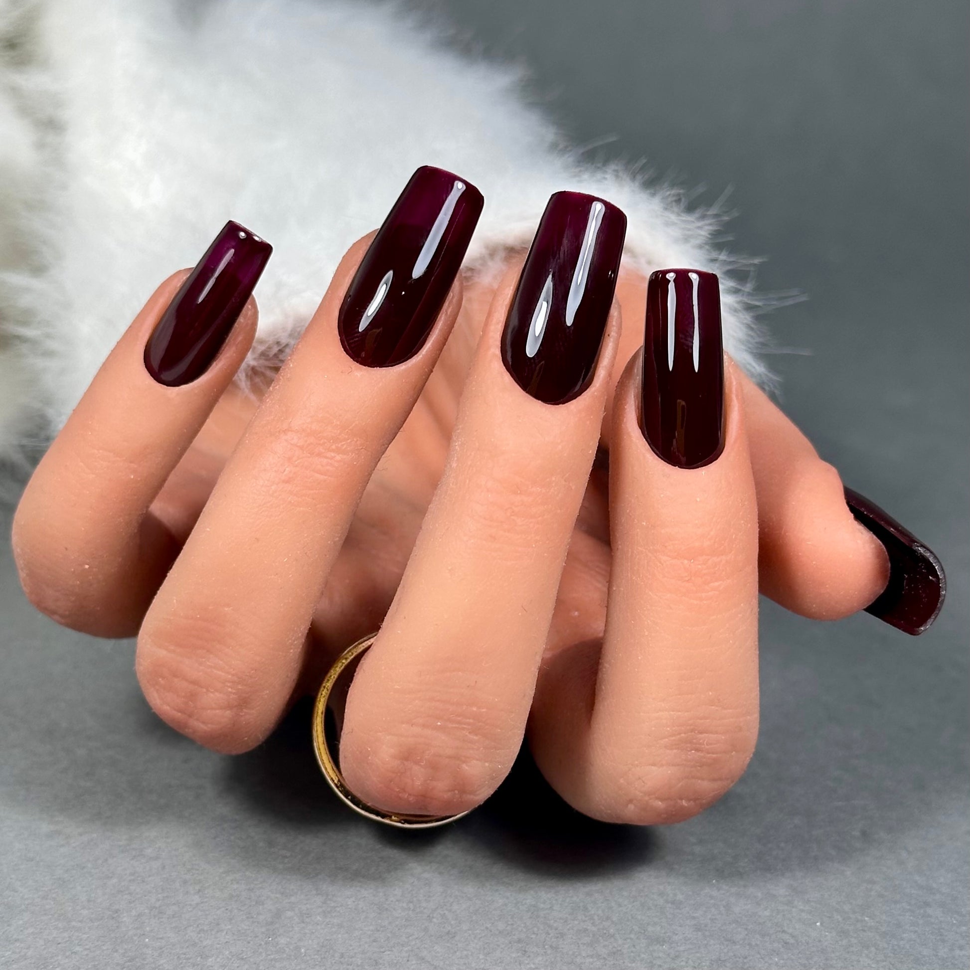 - Påfør Soak-Off Polish i den ønskede farve, i et tyndt ensformigt lag og hærd i 60 sek. (90 sek. ved mørke eller meget pigmenterede farver) i hybridlampe – Dækker farven ikke som ønsket, gentages dette trin.